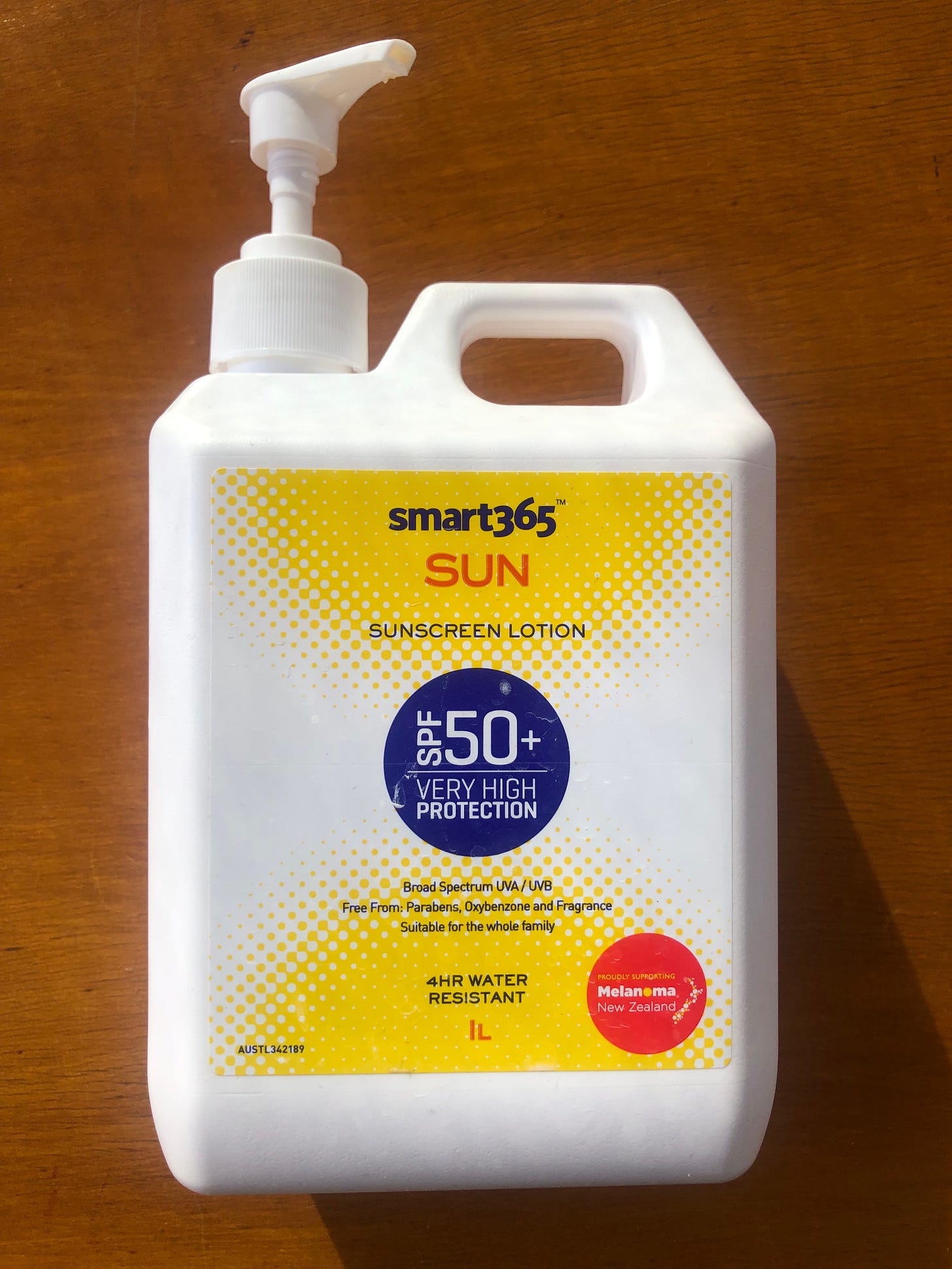 The solution is to use sunscreens that don’t contain that problem chemical, oxybenzone. I just checked the labels on the ones we have here. None of them contain it. Nor do they contain another problem chemical, paraben, which was used in early sunscreens but which has itself been linked to cancer. Most sunscreen products are exorbitantly priced, but according to the fine print on my cheapest everyday sunscreen (below), it seems OK.